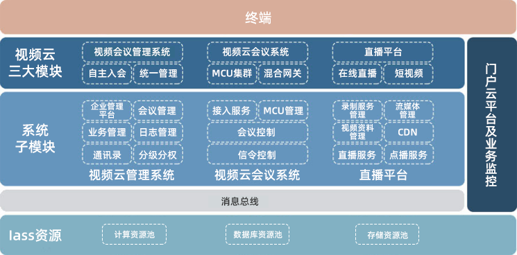 • 視頻云平臺的三大模塊:視頻會議管理系統、視頻云會議系統、直播平臺,由經敏捷開發,現已擁有完備的兼容性,可根據用戶使用的終端設備以及終端操作系統自動調節UI與視頻配置。滿足用戶多移動端無差別使用的需求。