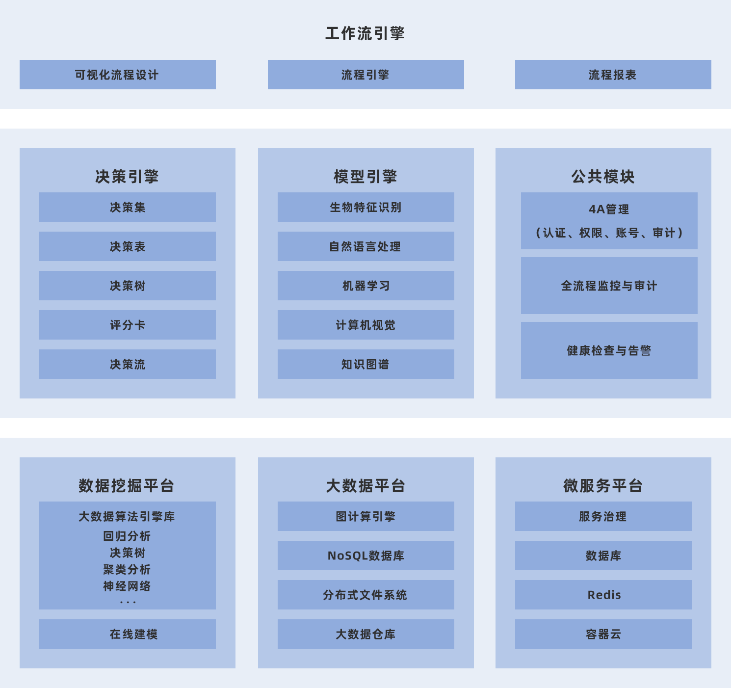 從多維度、多層次分析用戶風險特征,對業務申請、授信調查、審查審批、放款審核、貸后監控、逾期管理等環節的風險進行識別防控。