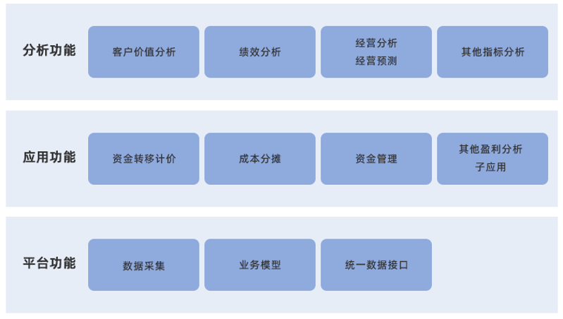 智能盈利分析平臺是在基于價值創造的經營轉型,未來智慧財務的管理趨勢下,打造的一款實用、標準、兼容、輕量、高性價比的產品,主要面向中小型金融企業,實現準確高效、準實時的各類成本、收益計量,進而支撐多維度的財務與經營分析的盈利分析平臺。